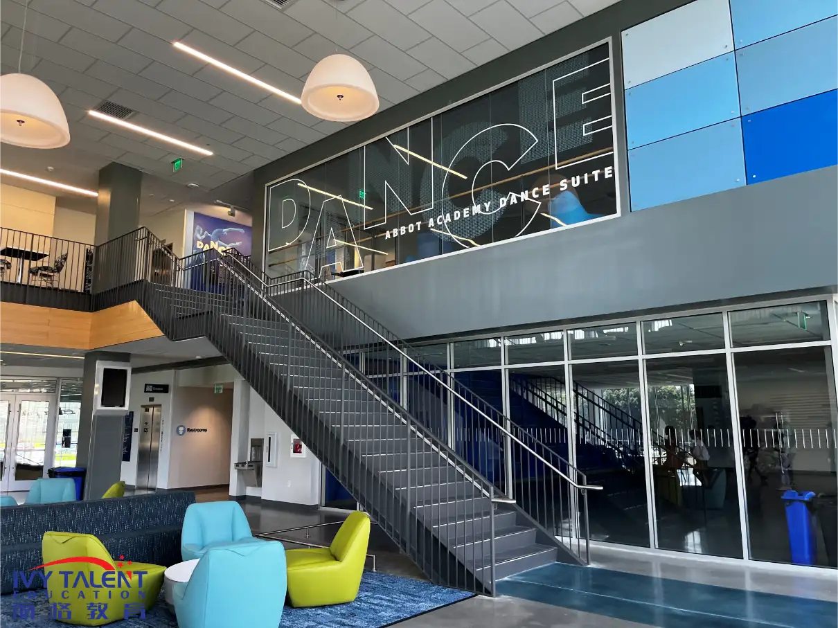 在剧院和舞蹈方面:乔治华盛顿大厅的剧院可容纳350个座位,配有电脑灯板和数字音响系统;另外,学校还配备有布景店、服装店、两个化妆间和两个舞蹈工作室。